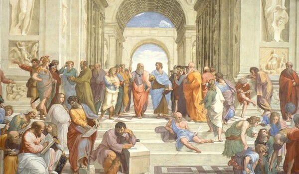L’artista platonico per eccellenza è Raffaello Sanzio, il pittore degli dei, dei poeti e dei filosofi, di Gesù Cristo, della Madonna e dei Santi, della gloria di Roma e della sua millenaria civiltà. “La bellezza divina è la sua patria celeste” scrisse di lui Edoardo Schurè nei Profeti del Rinascimento. Raffaello fu l’apice, punto d’incontro e d’equilibrio irripetibile tra il mito, l’arte e il pensiero, tra le divinità olimpiche e i filosofi dell’antichità, tra la romanità e la cristianità; il cattolicesimo apostolico e romano, la religione della luce, dell’eternità si fa storia e natura, corpo e figura. Non c’è conflitto in Raffaello tra paganesimo e cristianesimo, né antagonismo tra fede e ragione o dualismo tra la carne e lo spirito, tra il naturale e il soprannaturale. Raffaello dipinge quel punto eterno e sfuggente in cui culmina una civiltà. Dopo di lui sarà conflitto, sarà Maniera, sarà scissione o ripetizione. La sua Scuola d’Atene è il più grande e succinto sommario di filosofia mai realizzato: negli sguardi e nelle mani del vecchio Platone e del giovane Aristotele è condensata tutta la filosofia, tra l’ideale e il reale, tra il cielo e la terra, tra le idee e la natura. E con loro trascorrono i sapienti e i filosofi, alcuni riconoscibili, altri misteriosamente velati. Tutti riuniti nel paradiso sovratemporale dei filosofi. Quasi a rappresentare in figura quel che Dante aveva significato in una mirabile terzina nel IV canto dell’Inferno:”Genti v’eran con occhi tardi e gravi, di grande autorità ne’ lor sembianti; parlavan rado, con occhi soavi”. Raffaello li riscatta dall’inferno, li riporta in un luogo beato e glorioso, tra i portici, le arcate e le balaustre di un nobile tempio. Nella scuola d’Atene l’idealismo si fa pittura, il concetto si fa figura. L’impresa di Raffaello: la fede, il pensiero e la poesia fusi nella bellezza.