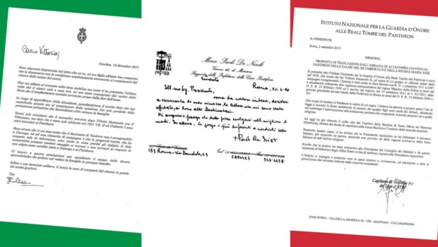 Colpisce poi leggere le lettere indirizzate da Vittorio Emanuele IV a Renzi, all’epoca premier, ad Alfano, al Santo Padre, a Monsigonr Parolin, per far rientrare le salme reali al Pantheon, nonché il mandato che il Principe affida alla Guardia d’Onore alle Reali Tombe del Pantheon.